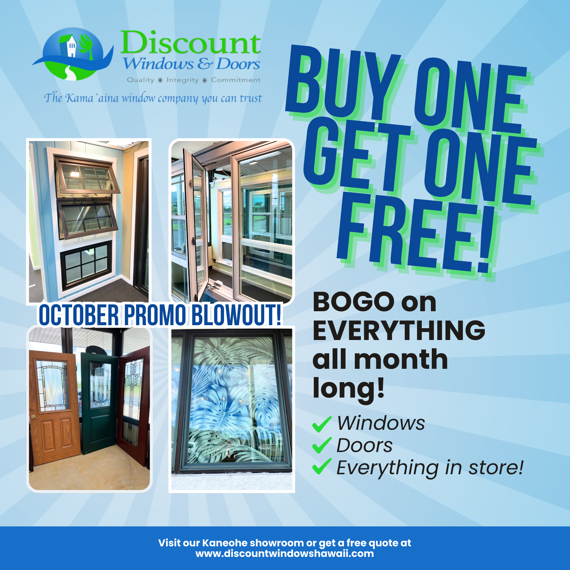 We have the biggest showroom on Oahu with a huge selection of products, featuring Hurricane Resistant Impact Windows and Makai Efficient Self-Cleaning Glass and a Lifetime Installation, Window, and Door Warranty.
